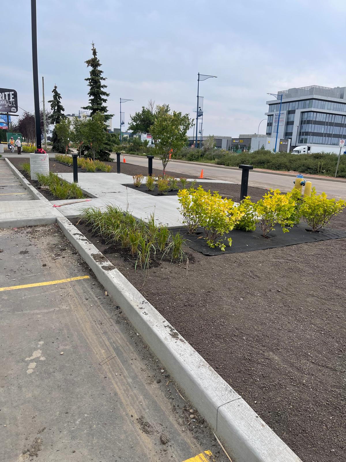• Concrete Curbs & Edging – Defined boundaries for parking lots and landscaped zones